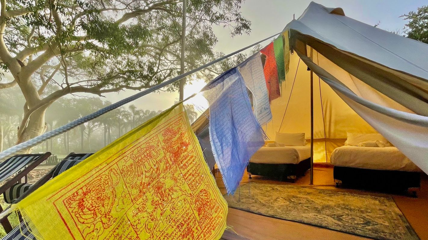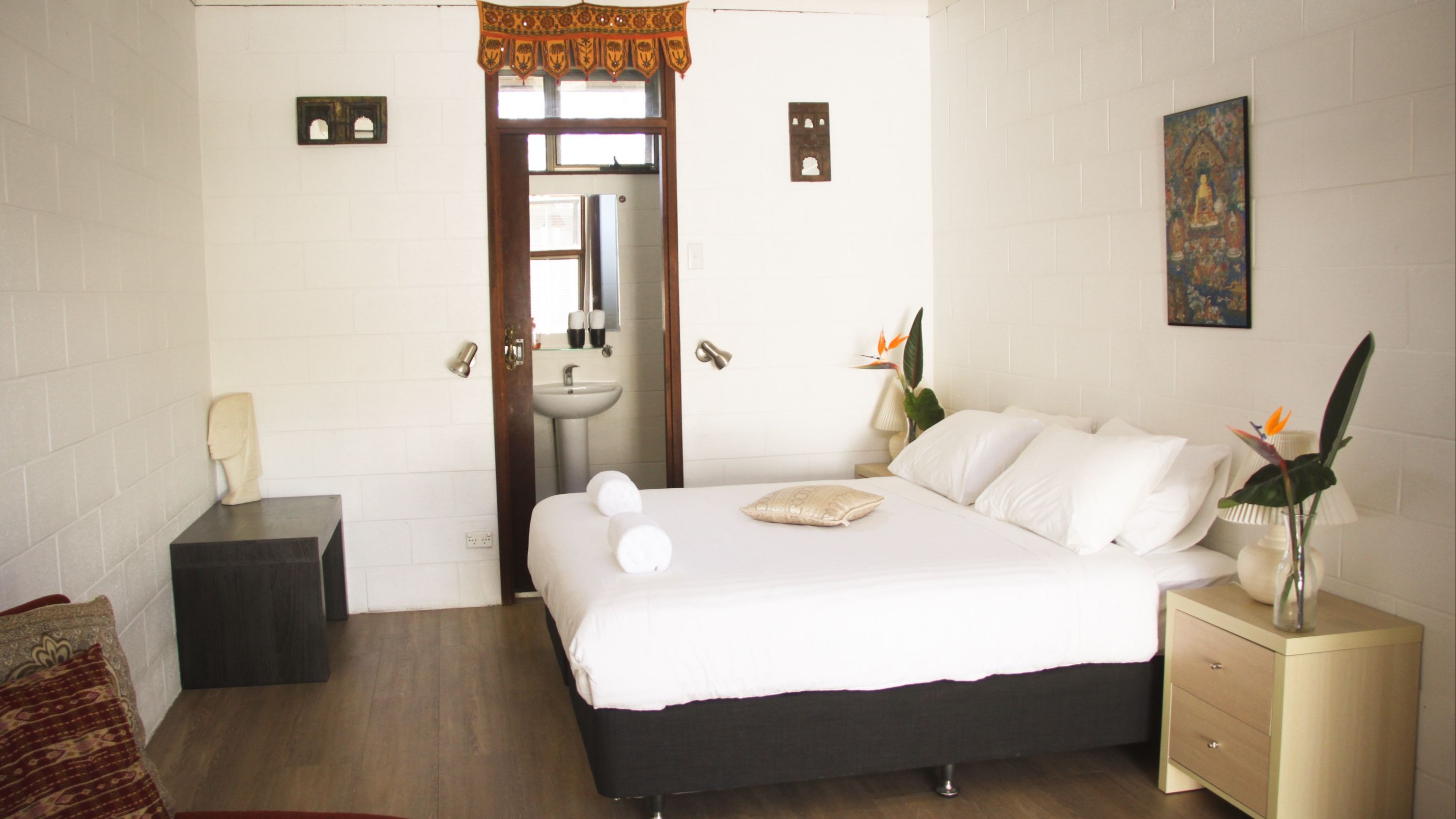 You have 2 choices - Relax in Swami's bright and comfortable ensuite rooms, or get closer to nature in style with Swami's 5-metre glamping tent with shared bathroom 20m walk away. Click on your option to go to the checkout page.